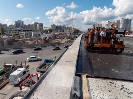 На Московско-Дунайской развязке началась укладка асфальтобетонного покрытия