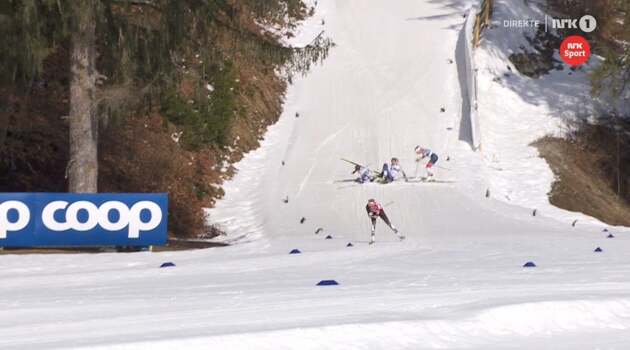 Падение Кирпиченко во время женского масс-старта на ЧМ. Видео