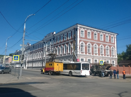 В центре Саратова столб рухнул на ехавший мимо троллейбус