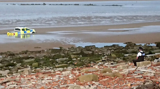 «Он просто сидел и грустно смотрел»: британец заснял на пляже полицейского, наблюдающего, как тонет его машина
