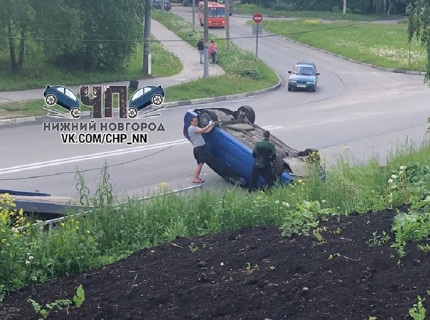 Водитель легковушки перевернулся и лег на крышу в Нижнем Новгороде