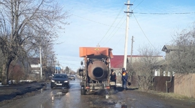 Дорожники кладут асфальт в Толоконцеве прямо в воду