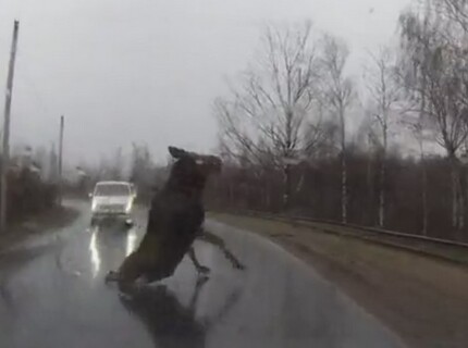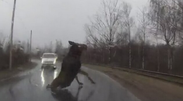 Поскользнувшийся лось едва не угодил под машину в Рыбинске