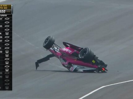 Страшный инцидент в Инди 500: колесо улетело на парковку и разбило машину