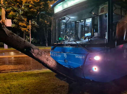 Мосгортранс: автобус врезался в дерево на Шипиловской улице, пострадал водитель