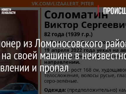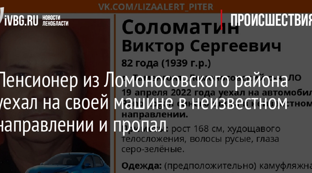 Пенсионер из Ломоносовского района уехал на своей машине в неизвестном направлении и пропал