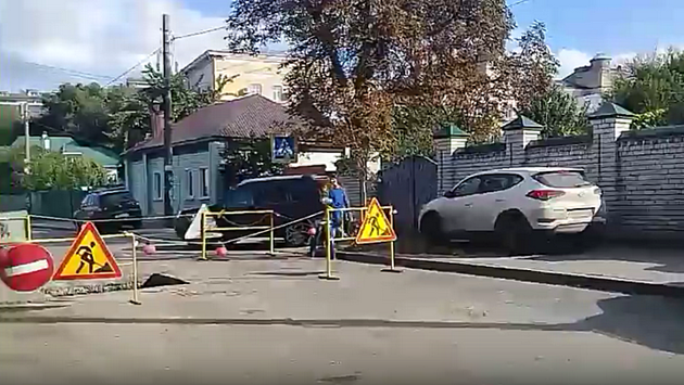 Воронежцы массово объезжали перекрытую дорогу по тротуару: видео появилось в сети