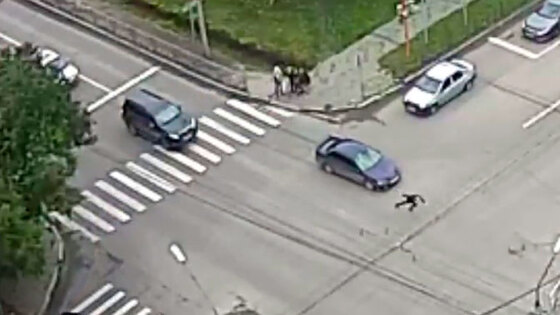 Красноярский «терминатор» перебежал дорогу после мощного удара автомобиля