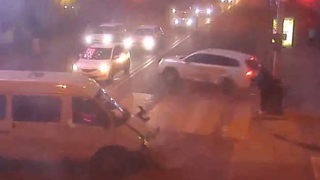 Краснодарский пешеход может смело отмечать 21 марта второй день рождения — отлетевший в сторону после столкновения с микроавтобусом джип прошел в паре сантиметров от его ног, так что молодой человек чудом не угодил в больницу с тяжелыми травмами. ДТП попало в объектив камеры наблюдения. Едва не обернувшийся трагедией инцидент произошел в 20:46 в минувшую среду, 21 марта, на пересечении Пашковской и Красной улицы краевого центра. Выехавший на перекресток на красный водитель "Газели" ударил в бок белый джип, владелец которого тоже рассчитывал проскочить на запрещенный сигнал светофора. После столкновения двигавшуюся на высокой скорости иномарку развернуло на дороге, причем так, что она прошла в считанных сантиметрах от стоявшего на тротуаре пешехода. Молодой человек, несмотря на загоревшийся зеленый сигнал, не успел ступить на "зебру", что и спасло ему жизнь. Водители и пассажиры транспортных средств в аварии, как свидетельствует запись, не пострадали.