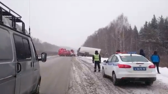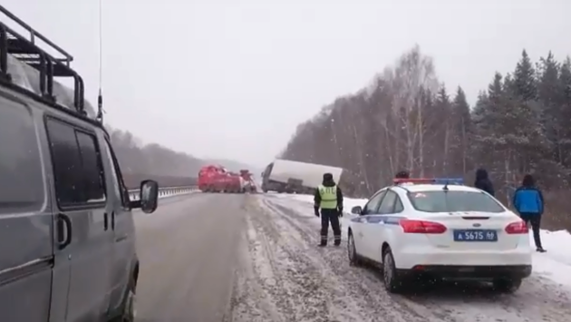 В Екатеринбурге сегодня снег, водители жалуются на «кашу» на дорогах. Особенно сильный снегопад начался с обеда, и на таком фоне произошло множество ДТП. Об одном из них мы уже написали — водитель Volkswagen не справился с управлением, задел трамвай, трамвай попробовал затормозить — и в результате травму плеча получила женщина-кондуктор, пролетевшая, по словам очевидцев, полсалона. А на 15-м километре Тюменского тракта большегруз улетел в кювет. Как сообщают в ГИБДД города, там столкнулись три машины, но других официальных подробностей нет. На видео с места происшествия грузовой тягач достает фуру из кювета. Если вы стали очевидцем ДТП, сделали фото или видео, сообщите нам на почту news@corp.e1.ru или по телефону +7 (343) 34-555-34. Также можно воспользоваться WhatsApp и Viber — их номер +7 909 704 57 70.