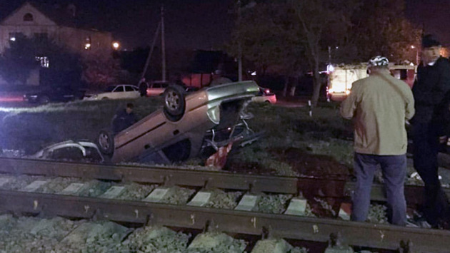 Поторопившийся водитель угодил под колеса тепловоза на переезде в Майкопе и в итоге оказался в больнице с многочисленными травмами, а его Hyundai Accent получил серьезные повреждения. Камера наблюдения зафиксировала момент столкновения. ДТП произошло около 21:30 в минувшую среду, 18 апреля, на углу улиц Пушкина и Железнодорожная. Владелец легковушки решил не дожидаться машиниста и быстро обогнул шлагбаум, но миновать рельсы не успел — в этот момент появился тепловоз. От удара в бок машину выбросило с проезжей части, где она совершила оборот вокруг своей оси и перевернулась на крышу. Водитель смог самостоятельно выбраться из салона Hyundai, но позже ему потребовалась медицинская помощь. О характере полученных им травм республиканское управление ГИБДД ничего не сообщает. Аналогичный случай произошел в тот же день на улице Чайковского в Благовещенске, где железнодорожный переезд не оборудован шлагбаумами. Водитель минивена в последний момент заметил приближение тепловоза и даже успел остановиться, но столкновения избежать не удалось. В результате инцидента никто не пострадал.