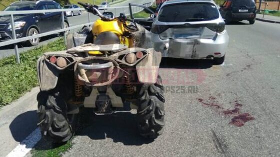 Необычное ДТП произошло во Владивостоке субботним днем. Как сообщает инстаграм-паблик dps.control, в районе дома №275а по улице Калинина квадроцикл врезался в заднюю часть легкового автомобиля.