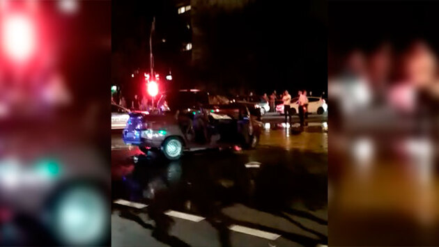 Судя по видеозаписи с места событий, авария произошла рядом с пешеходным переходом, где расположен практически полностью разбитый легковой автомобиль. Подробности ДТП выясняются, на месте работают сотрудники правопорядка.