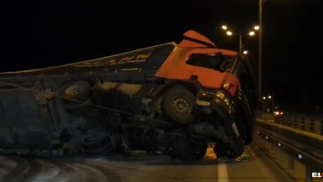 «Поднимал специальный тягач»: рабочие убрали фуру, которая опрокинулась и перекрыла Пермский тракт