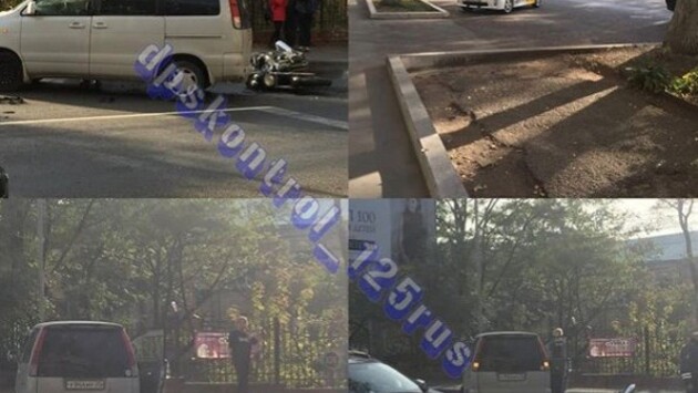 Опубликовано фото с места аварии. Смертельное ДТП с участием иномарки и мотоцикла произошло во Владивостоке на улице Верхнепортовая, передает Prim.News со ссылкой на инстаграм-паблик dpskontrol_125rus. Судя по фотографии с места аварии, мотоциклист столкнулся с минивэном. Пострадал ли водитель автомобиля, не уточняется. Другие подробности аварии пока не приводятся.