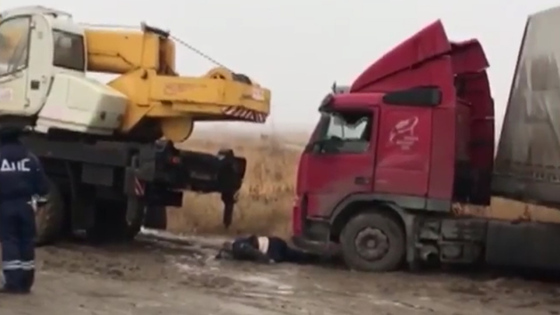 Сегодня утром, 28 ноября, в Волгограде во время вытаскивания фуры с обочины умер дальнобойщик. За несколько минут до своей смерти водитель фуры обратился за помощью к своему коллеге, местному жителю, сидящему за рулем автокрана с просьбой помочь вытолкнуть с обочины застрявший грузовик. Автокран подъехал, а затем сдал назад, чтобы подцепить фуру. В этот момент между грузовиком и автокраном стоял дальнобойщик. "Со слов водителя автокрана, он видел своего ростовского коллегу в зеркала до последнего, после чего тот пропал из поля зрения. А когда вышел из кабины, то увидел лежащее тело. Приехавшие медики диагностировали мгновенную смерть. Точная причина смерти не установлена, на трупе в области головы есть небольшая ушибленная рана. Задний стоп-сигнал автокрана разбит", — прокомментировали местной прессе в отделении МВД региона. Полицейскими в настоящее время проводятся все необходимые следственные мероприятия, и официально причина смерти еще не озвучена. Однако, по имеющейся информации, гибель дальнобойщика произошла от удара фарой автокрана по голове водителя грузовика.