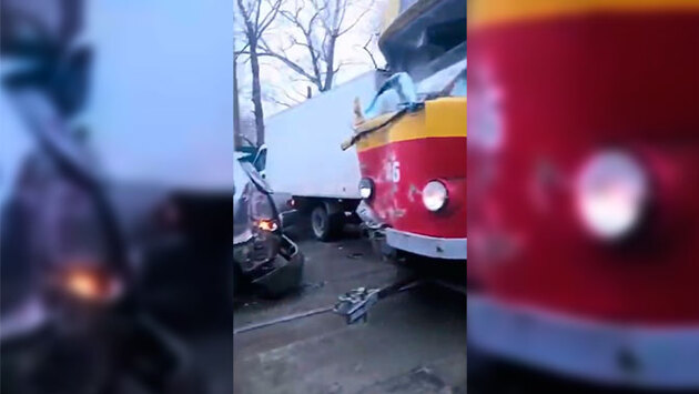 Массовая авария с участием трамвая и 17 машин произошла в Барнауле