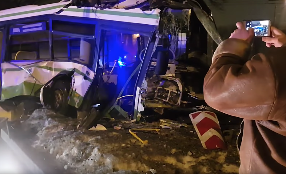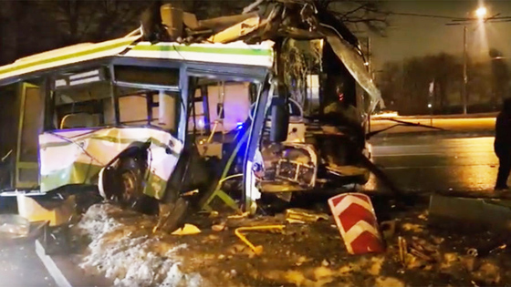 Вечером в понедельник, 25 февраля, рейсовый автобус в Москве столкнулся с легковушкой, а после протаранил фонарный столб.