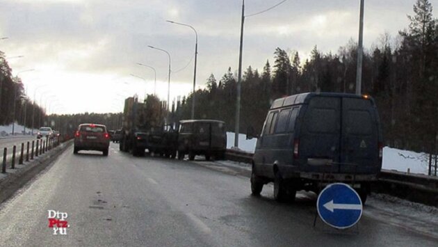 Сразу 10 автомобилей столкнулись на Объездной дороге в Петрозаводске. Видео