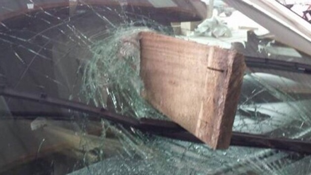 На пересечении улиц Соколовой и Вольской деревянная лестница пробила лобовое стекло рядом стоящего автомобиля. Скорее всего, лестницу скинуло с крыши ветром. Доска со ступенями прошла со стороны водителя и уперлась в переднее пассажирское сидение. В момент ЧП в машине пассажиров не было. По информации пресс-службы администрации города, здание №213 является частным и никак не связно с МБУ «Служба благоустройства города». «Служба благоустройства города» находится на улице Соколовая, 211а. Фото: из открытых источников
