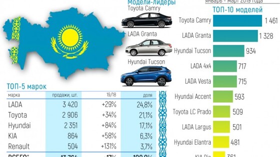 Эксперты аналитическое агентство «Автостат» составили рейтинг самых продаваемых автомобилей в России по итогам первого квартала 2019 года. Согласно их данным, в период с января по март автодилеры продали 28,6 тыс. новых машин семейства Lada Granta (на 39% больше чем за аналогичный период 2018 года), который и стал самым популярным авто в нашей стране, передаёт РИА Новости. На втором месте LADA Vesta с показателем 27,8 тыс. единиц. При росте в 15 %, в марте эта модель установила новый рекорд месячных продаж – 12,850 тыс. авто. Замыкает тройку лидеров KIA Rio (22,3 тыс.) В ТОП-10 также вошли: Hyundai Creta и Hyundai Solaris, Volkswagen Polo, LADA Largus, Renault Duster, Toyota Camry и Skoda Rapid. Новости России: Названы хетчбэки, пользующиеся популярностью у россиян