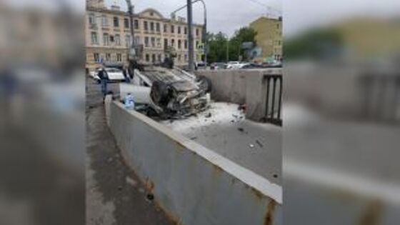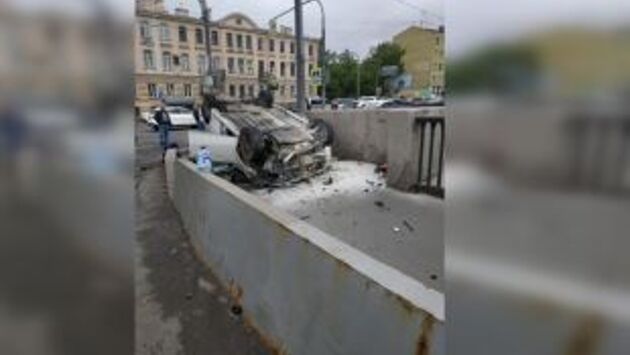 На Обводном канале после ДТП иномарка перевернулась и задымилась