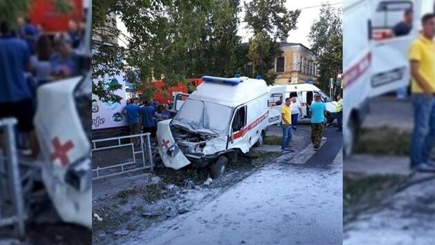 Спешившая в больницу карета скорой помощи загорелась после столкновения с легковушкой в Тамбовской области. Жертвой ДТП, которое сняла камера наружного наблюдения, стала 35-летняя фельдшер, еще четыре человека получили травмы. Авария произошла в 19:20 17 июня на углу Интернациональной и улицы Ленина в Моршанске. Водитель реанимобиля с включенными сиреной и проблесковыми маячками попытался проскочить перекресток на красный сигнал светофора, но тут в него врезался двигавшийся на высокой скорости SsangYong. Скорая, как видно на кадрах, опрокинулась на бок и развернулась вокруг своей оси, после чего вылетела на тротуар и загорелась. Машину быстро потушили, а всех находившихся в салоне госпитализировали, но спасти жизнь 35-летней фельдшеру врачам не удалось — она скончалась на операционном столе. В настоящее время в лечебном учреждении остаются 29-летний водитель скорой, 60-летняя медсетра и 44-летний пациент, а также пассажир легковушки.