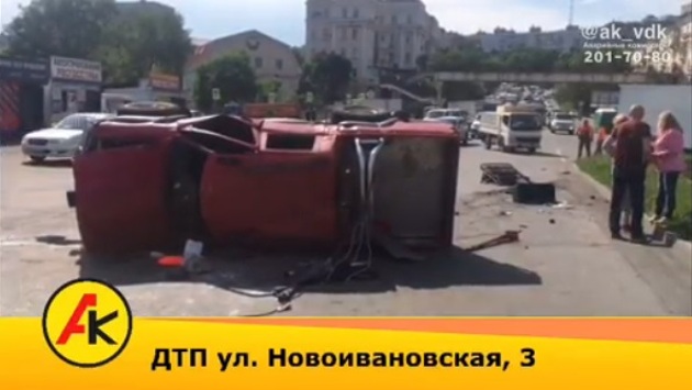 Пикап завалился на бок из-за удара грузовика во Владивостоке