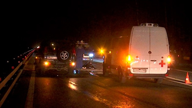 "Автомобиль совершил наезд на пешеходов на 67-м километре Киевского шоссе. Один человек погиб, один ранен", - рассказал собеседник агентства.