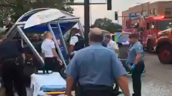 Минивэн дважды повредил пассажирский автобус, а после снес остановку с людьми в американском городе Миннеаполис.