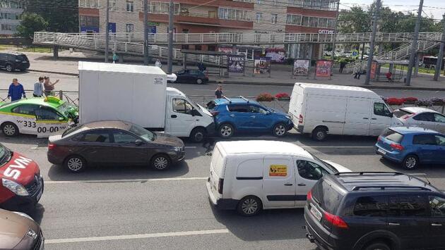 Массовая авария с участием пяти машин произошла на проспекте Славы в Санкт-Петербурге. Предположительно ДТП случилось по вине водителя такси. Об этом сообщило информационное агентство «Невские Новости». Источник фото: группа «ДТП и ЧП | Санкт-Петербург» Очевидцы рассказали в Сети, что водитель такси на полной скорости влетел в «Газель» на левой полосе в сторону Белградской улице. Грузовик от удара врезался в впереди стоящую легковушку. В результате ДТП пять машин были повреждены. По словам свидетелей аварии, таксист двигался на высокой скорости и даже не пытался затормозить. Обстоятельства массового столкновения устанавливаются.