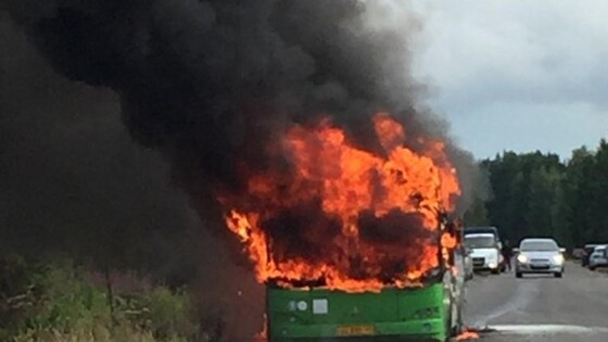ЧП произошло вечером 19 июля у деревни Стрельниково в Калининском районе. Загорелся рейсовый автобус № 104 "Центральный рынок - посёлок Металлистов. Пламя быстро охватило все транспортное средство. Уточняется, что в салоне автобуса были пассажиры.