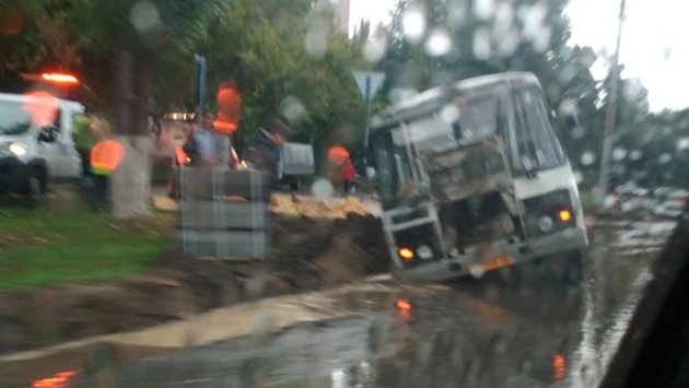 Яма была заполнена водой из-за ливня, и водитель мог ее не заметить. В Липецке ПАЗ двумя колесами попал в глубокую яму. Инцидент произошел на улице Космонавтов, когда автобус двигался по маршруту №379 с пассажирами. Видео с места происшествия появилось в Сети. Причиной инцидента мог стал ливень, который прошел в городе 5 августа. Вода заполнила яму, и водитель мог ее не заметить. О пострадавших в результате происшествия не сообщается. Все лето на улице Космонавтов, где автобус попал в яму, проводится комплексный ремонт, поэтому ямы в этом месте выкопаны давно, передает «ЛипецкМедиа».