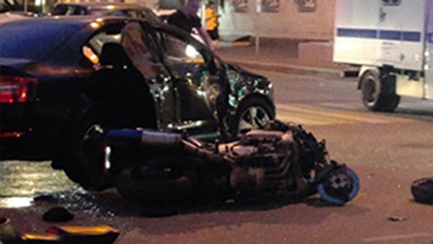 Кровь и металл: опубликованы кадры с места ДТП с мотоциклом перед входом в РГГУ