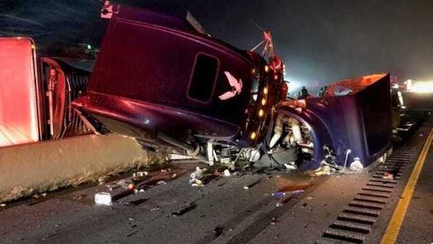 Как сообщила изданию Detroit Free Press полиция штата, легковушка, которая ехала перед грузовиком, резко затормозила, вынудив водителя фуры тоже ударить по тормозам. В результате ее занесло и, ударившись о бетонное заграждение, она опрокинулась, полностью перекрыв все полосы в своем направлении.