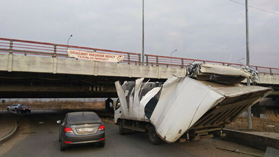 На днях счет застрявших там машин увеличился сразу на две и достиг цифры 174. Первой, судя по этому видео, там оказалась "ГАЗель", основательно изуродовавшая себе кузов.