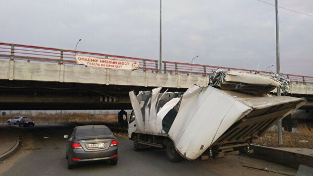 Несмотря на громкую славу в СМИ и в интернете, а также несколько баннеров с предупреждением и специальную пометку на Яндекс.Картах, "мост глупости" на Софийской улице в Санкт-Петербурге продолжает исправно взимать с невнимательных автомобилистов свою дань в виде разбитых кабин и снесенных начисто фургонов. Водителей не проходящего по габаритам транспорта тянет туда, как мух на мед.
