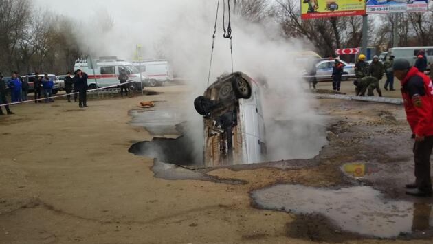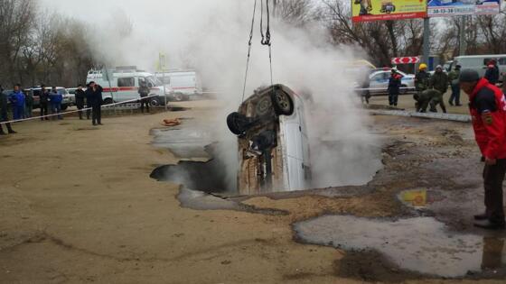 Автомобиль с людьми провалился в яму с кипятком