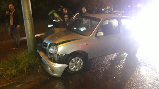 Nissan протаранил столб на Московской