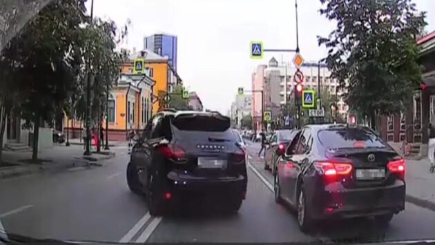 В центре Красноярска поймали злостного нарушителя на дорогой иномарке