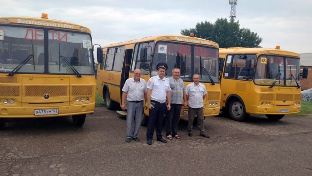 В преддверии нового учебного года сотрудники Госавтоинспекции проверяют техническое состояние школьных автобусов. Об этом в понедельник, 10 августа, сообщает пресс-служба отдела ГИБДД ОМВД России по Выселковскому району. Особое внимание госавтоинспекторы уделяют работоспособности ремней безопасности, внешних световых приборов, исправности тормозной системы, оснащенности тахографам и другим параметрам, влияющим на безопасность перевозки детей. При проверке траснпорта инспекторы напоминают водителям об ответственности, при перевозке юных пассажиров и неукоснительном соблюдении правил дорожного движения. Ранее сотрудники ГИБДД приняли участие в приёмке к новому учебному году школ и детских садов.