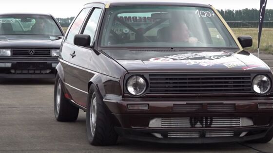 Энтузиасты модифицировали старенький Volkswagen Golf, который показывает отличные результаты по скорости. Представители команды Turbosektor-Ost разработали проект доработанного Volkswagen Golf второго поколения. Главное отличие новой версии автомобиля - наличие турбированного силового агрегата на 1300 лошадиных сил. Интересно, что этот автомобиль уже был представлен энтузиастами в прошлом году. Тогда его показатели производительности достигали отметки в 1233 лошадиных сил. Сопоставим такой результат лишь с Bugatti Veyron. В этот раз старенький «немец» показал впечатляющие результаты - четверть мили авто преодолело всего за 9,1 секунды, а на финише его скорость превысила отметку в 270 км/ч. Также создатели автомобиля рассказали, что со 100 до 200 км/ч Volkswagen Golf сможет разогнаться всего за 2,7 секунд, еще 50 км/ч транспортное средство набирает за 2 секунды. «Выйти» на показатель в 300 км/ч с 200 км/ч авто может всего за 4,6 секунды.