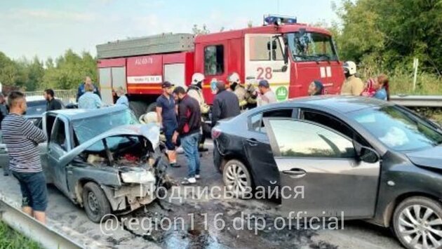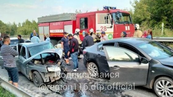 Три человека пострадали в лобовом столкновении иномарки и "Лады" в Казани