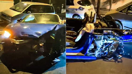 Прокатный Audi R8 развалился пополам после ДТП с 13 автомобилями