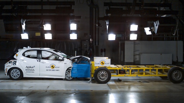 Гибридный Toyota Yaris стал первым автомобилем, который прошел краш-тесты по новой методике Euro NCAP. Японский хэтчбек продемонстрировал эталонную безопасности для небольшого семейного автомобиля и получил пять звезд. Новая программа краш-тестов Euro NCAP предусматривает проведение нового испытания, в ходе которого имитируется выезд на встречную полосу. Тестируемый автомобиль на скорости 50 километров в час врезается в движущуюся навстречу с такой же скоростью тележку, на которой установлен деформируемый барьер. Это испытание стало самым тяжелым для небольшого хэтчбека. В ходе краш-теста грудь манекена-водителя зафиксировала оранжевый уровень нагрузок, который подразумевает возможность получения серьезных травм. Также в пограничной зоне оказались бедра и колени водителя и переднего пассажира. Еще хуже с ударом справились ступни манекена-водителя, получившие коричневый уровень нагрузки. Однако с фронтальным ударом о стену на скорости 50 километров в час Toyota Yaris справился. Mercedes-Benz создал сериал о жизни манекенов для краш-тестов Видео: Euro NCAP В ходе следующего теста, конструкцию автомобиля испытывали во время бокового удара о столб на скорости 32 километра в час. С этим столкновением у «Яриса» также не возникло проблем. При боковом краш-тесте на скорости 60 километров в час, несмотря на наличие центральных подушек безопасности, хэтчбек заработал три балла из-за контакта водителя-манекена с элементами интерьера. Однако имитируемый пассажир во время этого испытания не пострадал. Помимо этого, системы безопасности Yaris распознали пешехода спереди при совершении поворотов, сумели избежать столкновения с велосипедистом, выехавшим из-за припаркованных автомобилей, а также успешно справилась с тестом на подрезание. В виду того, что с активной частью программы Euro NCAP хэтчбек справился успешно, несмотря на то, что автомобиль продемонстрировал средние результаты краш-теста на «встречке» модели присудили пять звезд рейтинга за безопасность по новым стандартам. В середине мая европейская организация Euro NCAP представила самое масштабное обновление протоколов тестирования автомобилей за последнее десятилетие. В новой программе краш-тестов анонсировалось несколько новых испытаний, в том числе имитация столкновения компактной машины с более крупной.