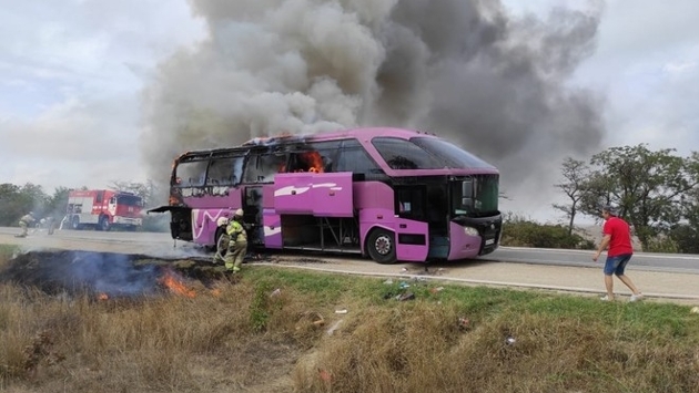 В Крыму сгорел ехавший из Геленджика пассажирский автобус