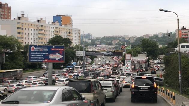 На данный момент пробки растянулись от съезда с Золотого моста и приблизительно до остановки общественного транспорта «100-летие Владивостока», а также в сторону города от перекреста проеспекта 100-летия Владивостока с улицей Русской и фактически до въезда на путепровод.