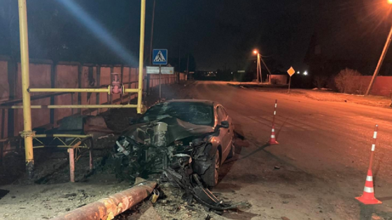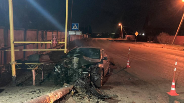 В Тюменском районе автомобиль Volkswagen Passat снес опоры газовых труб. Водитель иномарки выжил.