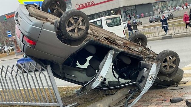 Авария произошла около полудня на перекрестке проспектов Мира и Автозаводский, напротив Дворца культуры "КАМАЗ". На пересечении улиц столкнулись "ВАЗ-2112" и KIA. Отечественный автомобиль отбросило на ограждение, он перевернулся.