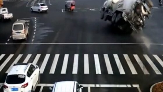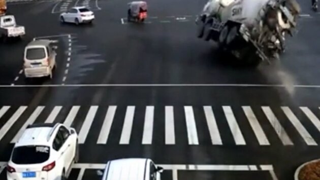 В китайском Фуяне (провинция Аньхой) тормоза отказали у бетоновоза, загруженного под завязку жидким раствором. Тяжелая неуклюжая махина летела по многополосному шоссе, стараясь не задеть соседние автомобили, но на перекрестке со светофором еле протиснулась между стоящими машинами.